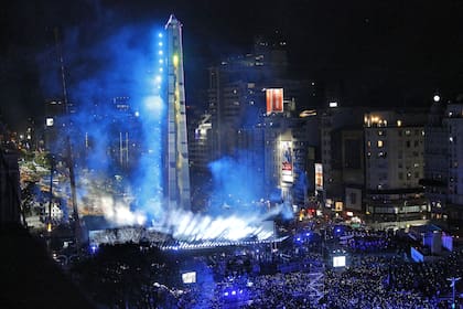 La euforia de un momento inolvidable le dio pase a otro disfrute: el tango, parte de la identidad de Buenos Aires. Al ritmo de varios clásicos de esta música que lógicamente incluyeron a Carlos Gardel, entre otros, el Obelisco se transformó en un gran bandoneón, y en la punta apareció un músico en solitario. El inicio de esta escena mostró la melancolía como origen del tango, representada en la soledad de aquel instrumento en medio de la noche y la avenida. Enmarcados entre el blanco y el negro, los colores clásicos de este género, distintas parejas de bailarines se pasearon entre la multitud. También, en los balcones de los edificios que están sobre la Avenida 9 de Julio aparecieron más personas bailando. La idea, claro, fue mostrar que el tango está también en lo cotidiano, en las casas.