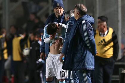 Messi nunca se queja ni simula. Ni exagera. Por eso se encendió la alarma. Ya en el vestuario, mientras el partido continuaba, el cuerpo médico del seleccionado le realizó a Messi una ecografía que, en principio, descartaba una lesión de gravedad. De todos modos, como el dolor era muy persistente, se resolvió trasladar al capitán a la clínica CIMAC para hacerle una resonancia y ajustar el diagnóstico. Lo acompañó el doctor Alejandro Rolón y, luego se confirmó el parte médico oficial con una "importante contusión ósea y de partes blandas de la parrilla costal izquierda y de zona paravertebral lumbar". "No me atrevo a aventurar un diagnóstico", se había limitado a responder Martino.