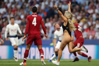 Ya está casi garantizado: ante cada gran evento deportivo aparece un intruso o intrusa en pleno campo de juego, y en varias ocasiones sin ropa. A los 17 minutos del primer tiempo entre Liverpool y Tottenham, una mujer con una malla negra cavada cruzó el césped del Wanda Metropolitano de Madrid hasta que fue detenida.
