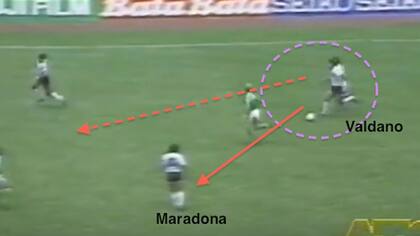 La corrida de Burruchaga para el 3-2 quedará en el recuerdo para siempre, pero no fue casualidad. Si bien Argentina tuvo más inconvenientes para hacer pesar su movilidad y sorpresa, la mayoría de las veces la fórmula que intentó fue con pases de Maradona para los piques de Burruchaga, partiendo desde atrás y llegando él a la posición de "falso 9". Diego fue perseguido de cerca por Jacobs y Matheus. ¿Dónde estaba Valdano? Más que nunca jugó como mediocampista por la derecha, con la misión de ser la primera oposición del zurdo Briegel cada vez que pretendía proyectarse por la izquierda. Las persecuciones mutuas de Valdano con Briegel fueron, claramente, uno de los duelos de la final. Cuciuffo fue lateral, pendiente de los movimientos de Rummenigge, las subidas de Forster y los piques de Eder, pero tanto él como Olarticoechea se proyectaron. La falta de donde nació el gol de Brown se la cometió Matheus a Cuciuffo a pocos metros del área.