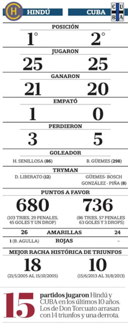 Dueño de una irreverencia tal a la hora de jugar, CUBA llega a la primera definición en su historia, y desde que se juega bajo este formato de competencia (1998), en su pico máximo de madurez. Completamente amalgamado tanto sus backs como sus delanteros, son éstos los artífices de la rápida recuperación de la pelota para que los veloces del fondo exploten su velocidad (Migliore, Moroni y González). Con un pateador sumamente certero (Güemes) y con la mejor tercera línea en la actualidad por rendimiento y versatilidad (Piña, De la Vega y Maguire), todos y cada uno se sacrifican en la cancha en pos del objetivo. En un XV titular en su justo punto de equilibrio, CUBA busca terminar con 43 años de espera.