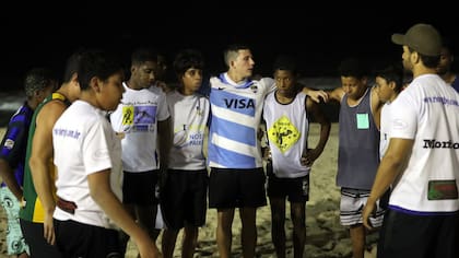 “Son unos 30 chicos que se entrenan como infantiles y unos 10 o 12 que lo hacen como juveniles”, cuenta Nimai Videla, un mendocino fanático del rugby que hace cuatro meses eligió Río de Janeiro como un nuevo punto para su recorrido por América del Sur, y que ahora es uno de los coach del proyecto “Río Rugby é Nossa Paixão” (“Río Rugby es nuestra pasión”), un programa solidario que trabaja con los chicos de las favelas de Cantagalo y Rocinha y que está a cargo de Justin Thornycroft, un gringo nacido en Zimbabwe. Esta tarde, en la playa están Nimai, un profesor brasileño, una ex jugadora venezolana y una psicóloga deportiva.