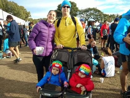 Pienso en mi marido que se banca mi locura runner desde hace años, en mis hijas, que desde chiquitas escuchan "mamá se va a entrenar un ratito y vuelve", en mi familia que me ayuda y me alienta, en los días de calor, lluvia, viento y frío en los que sin importar nada salgo a correr igual.