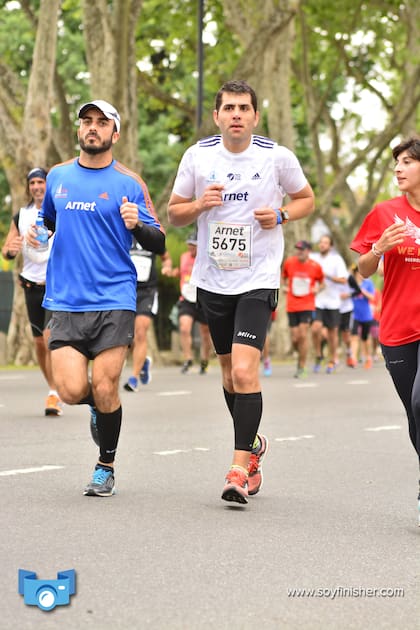 Al ver a los chicos me llené de energía. Si bien el ritmo no pudo ser el buscado, pude mantener el que venía haciendo el último tramo de la carrera. Llegamos al km 39 y el recorrido ya es otra cosa. Vuelve a haber mucha gente y el aliento de los desconocidos ayudan y mucho. Maty seguía empujando, pero mis piernas desde hacía rato que no querían más. Y ahí no sé cómo explicarlo, pero juro que lo sentí. Sentís como todo tu cuerpo empuja para adelante. Sentís los latidos de tu corazón. Sentís el aire en la cara. ¡Lo sentís! Sentís que vas a llegar, que tu corazón va a hacer que llegues, porque lo deseaste, porque lo querés…porque estás físicamente agotado, pero con el corazón más fuerte que nunca. Sentís que corres desnudo, con el corazón en la mano, sentís que eso sos vos. Un cuerpo frágil y roto empujado por el corazón. Ahí aparecen increíblemente imágenes como flashes. Aparece cuando jugaba a la agarrada en el patio de la mi querida Escuela N° 8. Y ahí estoy en las pretemporadas con los chicos de Quilmes. Y recuerdo las primeras carreras allá por el año 2000 con el Vasco. Me acuerdo de las horas y horas de trotes en el bosque platense. Y ahí entendí que terminar la carrera sería lograr lo que siempre quise. Ser un deportista... amateur, aficionado o loco. No lo sé, pero llegar sería y es cumplir un sueño, un anhelo que internamente tengo desde siempre. Por eso no podía aflojar. Por eso no aflojé. Y me acuerdo de todos los amigos, conocidos, compañeros de trabajo que en los últimos días tiraron buena energía y me alentaron para corriera. Y veo el Km 41, ahí sólo pienso que voy a llegar. Ni pienso en el tiempo buscado. Tampoco en el ritmo deseado. Sé fervientemente que voy a llegar. Me siento agotado y escucho el "huevo rojo", "vamos vamos", de Maty ….Sólo pienso en estar con Luli cuando llegue, en el abrazo que le voy a pegar a Gustavo, en los ojos de mi vieja que desde Tresa, imagino estará sufriendo. Y, de repente, totalmente cansado, exhausto, vacío el pecho estalla de alegría. Indescriptiblemente se infla. Es mi alma que se hace cargo y me lleva hasta el km 42 con una felicidad difícil de explicar. Ahí Nicolás, otro fenómeno que me regalaron las carreras. Él me alienta como si fuera el mejor corredor del mundo y estuviera por ganarle al mejor keniata. Y me pasa los colores de mi sangre, de mi corazón. Llegue, llegamos todos. Nunca corrí solo. Fue siempre en compañía de la gente que quiero, gracias a ellos pude terminar. Veo el arco y siento que muero. Cruzo la llegada y vuelvo a comprender que corrí 30 km con las piernas, 8 con la cabeza, 4 con el corazón y 195 metros con el alma. Sin dudas, la distancia perfecta después de 3h54m. Siento que volví a nacer.. Desde ek 11 de octubr soy maratonista. Deportivamente, el título que más soñé, el que más desée, el que más disfruto y el titulo del cual más orgulloso me siento.