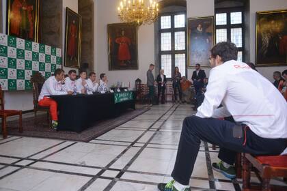 Una perla: el equipo argentino llegó al Ayuntamiento de Gdansk escuchando a Rodrigo y Janowicz acompañó aplaudiendo. pic.twitter.com/5fLahCyA5Q&— Sebastian Torok (@sebatorok) 3 de marzo de 2016