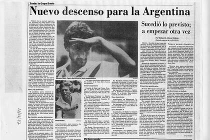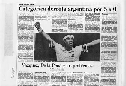 La cobertura de La Nacion de aquella serie de 1987 en Praga, que Argentina perdió 5 a 0 y significó el descenso a la Zona Americana de la Copa Davis