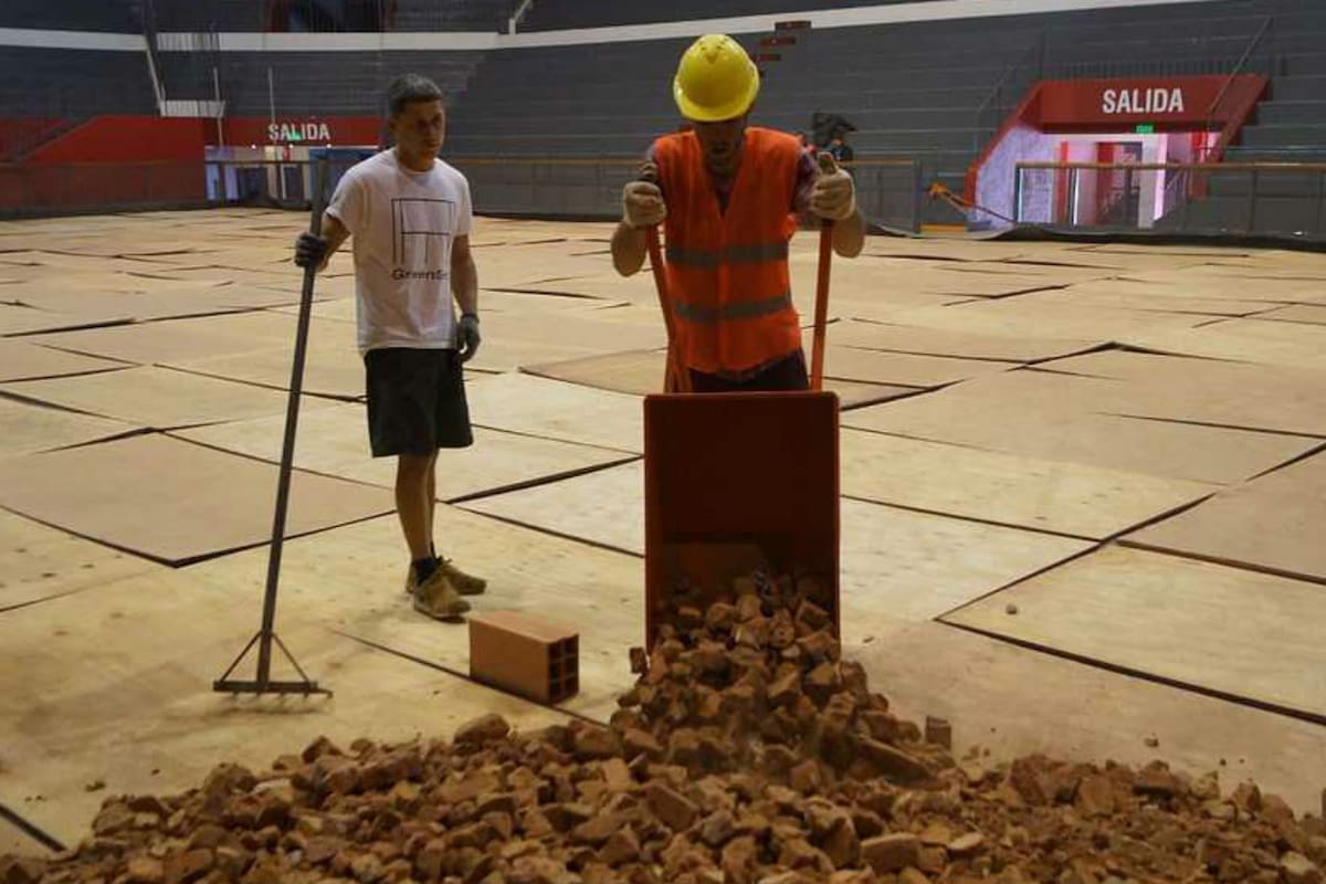 La Argentina y Colombia se enfrentarán del 14 al 16 de septiembre próximo, en la ciudad de San Juan, por la eliminatoria de la Copa Davis y en el escenario de la serie, el estadio techado Aldo Cantoni, avanza el armado de la cancha de polvo de ladrillo, que debe estar terminada para el miércoles próximo. El primer paso de los encargados de la producción del evento fue colocar una membrana de polietileno impermeable y placas de madera para proteger el piso flotante. En las últimas horas comenzó la colocación de los cascotes de ladrillo para formar la base.