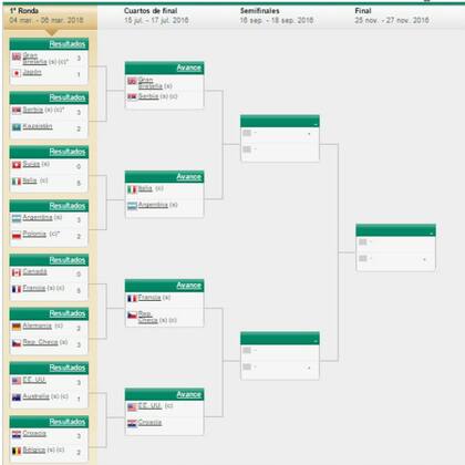 Este es el fixture y los resultados del Grupo Mundial de la Copa Davis 2016: