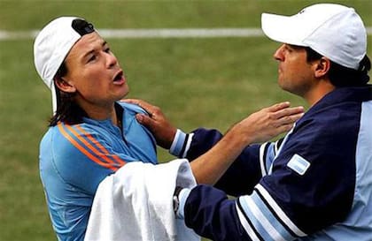 Lleyton Hewitt y Guillermo Coria tienen la misma edad, 34. El australiano, que cumplirá 35 el 24 del mes próximo, ex número 1 del ranking y campeón de dos Grand Slam, dejó profesionalmente el tenis tras caer en la 2a rueda del Abierto de Australia frente al español David Ferrer. El Mago, en cambio, con un hombro maltrecho y angustiado por los errores en el saque, se retiró en 2009 luego de una carrera excelente, en la que llegó a ser 3 del mundo. Coincidieron muchas temporadas en el tour, pero solamente se enfrentaron dos veces, con triunfos de Hewitt: en Indian Wells 2003 y en los cuartos de final de la Copa Davis 2005. Pero fue este último match, sobre el césped del Sydney International Tennis Centre, el más recordado. El primer punto de la serie en la que el equipo capitaneado por Luli Mancini ganó 4-1, fue un escándalo, en el que ambos tenistas se insultaron y cruzaron los límites.