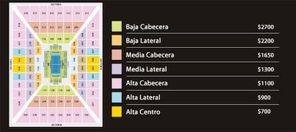 Para poder ver la exhibición será necesario desembolsar, por lo menos, $700 . Ese es el valor del ticket más barato en la platea más alta. La ubicación más cara es la cabecera baja, que costará $2700.