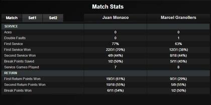 Derrotó al español Marcel Granollers por 6-1 y 6-2 en 1 hora y 13 minutos de juego. El tandilense ganó el 70% de sus puntos con el primer servicio, mientras que Granollers sólo lo hizo el 38%. Pico se enfrentará en la próxima rueda a Ivo Karlovic.