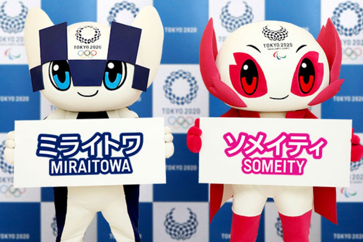 Miraitowa es una combinación de las palabras japonesas para futuro y eternidad, mientras que Someity toma su nombre de una popular variedad de cerezo, "Someiyoshino", y recuerda a la frase en inglés "so mighty" ("tan poderoso"). Los diseños de las dos mascotas fueron seleccionados por estudiantes de primaria de todo Japón. Se optó por un proceso de selección así para implicar a los niños con los Juegos y para garantizar transparencia.