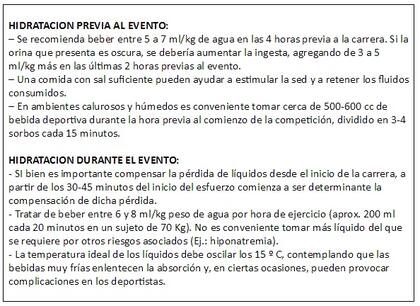 Este tipo de carreras presenta una pérdida de líquidos que más allá de una recuperación adecuada durante la carrera, probablemente no alcance a supercompensar dicha merma.