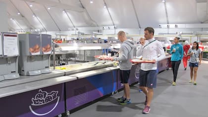 Normalmente, la prensa sólo puede acceder a la llamada “Zona Internacional” de la Villa de los Atletas, una suerte de área mixta que antecede a los edificios donde se hospedan los deportistas y cuenta con una playa seca con reposeras, sillas y mesas comunales al aire libre, varias tiendas de servicios (banco, correo, restaurante, souvenirs y hasta salón de belleza con peluquería y manicura) y un escenario para eventos especiales. Pero ayer, LA NACION participó de un tour especial de la villa junto a otros periodistas y, pudo traspasar la “Zona Internacional”, donde se suelen realizar las entrevistas con los atletas y oficiales de las delegaciones.