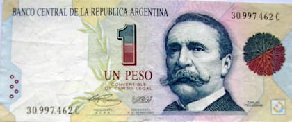 Aunque se dejó de imprimir, todavía hay en circulación 800.000 unidades de billetes de 1 peso en cuyo anverso está Carlos Pellegrini, ex Presidente y fundador del Banco de la Nación Argentina. Junto con billete de 50 pesos fueron las dos primeras unidades en entrar en circulación con la convertibilidad, el 2 de enero de 1992.