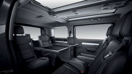 En la versión VIP, la tope de gama, está disponible un espacio apto para el trabajo en el sector trasero, con la variante de cuatro asientos tapizados en cuero en cuero enfrentados o la alternativa de cinco asientos con un la opción de un asiento de banco de tres plazas por fila y una mesa deslizante retráctil.