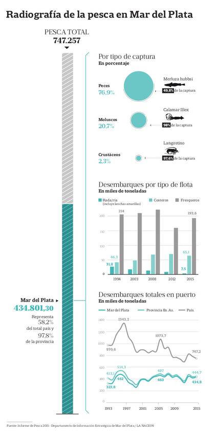 Los datos reflejan la tendencia. En 1994, las embarcaciones de la categoría Rada/Ría (entre las que están incluidas las lanchas amarillas) generaban desembarques por casi 31.852 toneladas, frente a las 46.301 de los barcos Costeros y las 214.019 de los Fresqueros, según el Departamento de Información Estratégica de Mar del Plata. Pero con el paso del tiempo se desplomaron a 7569 toneladas en 2015, contra las 65.186 de los Costeros y 193.619 de los Fresqueros.