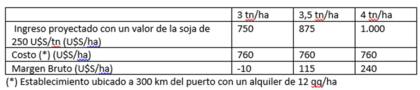 Esto hace que el rinde de indiferencia pase de 3,04 t por hectárea en el cálculo previo a la siembra de la campaña 2018/19 a 3,61 t por hectárea en la actualidad. Estimando que la producción del país será de alrededor de 56 millones de toneladas de soja, y calculando el diferencial entre lo que presumía el productor recibir y lo que realmente recibirá, la pérdida de ingreso del sector será de US$2240 millones.