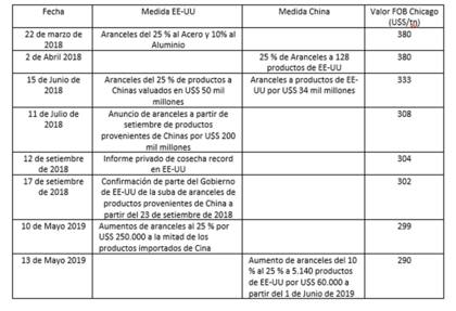 No hay duda que esta caída del valor de la soja a nivel internacional comienza a producirse a partir del anuncio de aumentos de aranceles de EE.UU. a importaciones de China y otros países desde marzo de 2018.