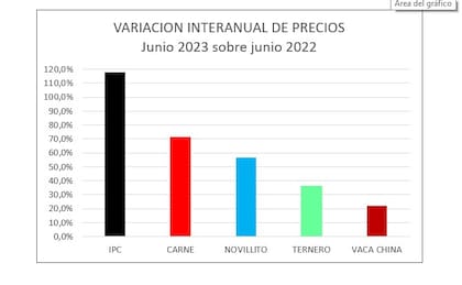 Partiendo de una inflación del 7% para junio, según las estimaciones de los especialistas, el incremento del IPC interanual a fin de junio alcanzaría el 117,6%. Frente a estos números, el retraso de todos los valores relacionados a la materia prima (ganado) y la carne al consumidor resultan de tal magnitud que cuesta recordar datos similares en períodos interanuales anteriores.