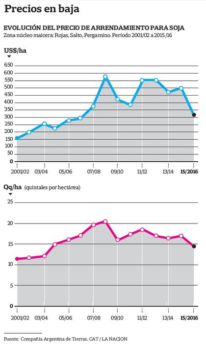 Directivos de un grupo agropecuario que alquila grandes superficies en el sur de Córdoba, confiaron a LA NACION que estiman que las condiciones ofrecidas a los dueños de los campos mejorarán un 20%, aunque precisaron que no volverán los generosos pagos en quintales fijos que se daban hasta hace tres años. "Para eso va a ser necesario que venga plata de afuera", dijo un ejecutivo.