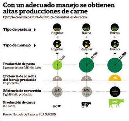 Ese potencial, según Roumieu, no se aprovecha "porque los reales ejecutores del manejo, de esa interacción entre animal, pasto y persona, no asisten a los cursos". Según el profesional, mediante técnicas de manejo, en la cosecha y en el aprovechamiento del pasto "se puede duplicar la producción de carne".