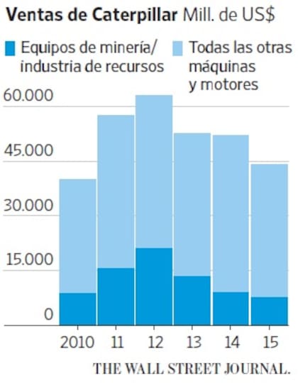 Los precios del petróleo, en tanto, comenzaron su caída en 2014. Las ventas de Caterpillar retrocedieron 15% en 2015 puesto que las empresas estadounidenses de energía de esquisto demandaron menos equipo.