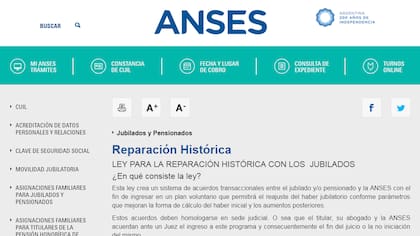 2) Dentro de "Mi ANSES", en la sección "Reparación histórica" el jubilado podrá saber si está incluído dentro del programa y la resolución del trámite.