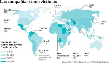 Los ejecutivos a la cabeza de las compañías más importantes del mundo temen expandir los negocios de la empresa hacia países de América latina por la alta probabilidad de verse envueltos en temas de corrupción y sobornos. Así lo manifestó el 72% de los 768 ejecutivos senior de compañías de Europa, América, Asia y África, la mitad de los cuales pertenecen a empresas que facturan por encima de los 500 millones de dólares por año. Entre ellos, el 27% directamente desistió de operar en esta región por ese motivo. Así se desprende del último informe de la consultora Kroll llamado 2016 Global Fraud Report, realizado en conjunto con la Unidad de Inteligencia de The Economist y difundido en exclusividad en LA NACION y en el Financial Times.