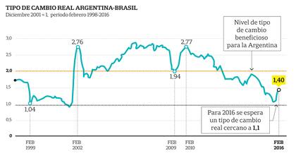 Una de cada cinco exportaciones de la Argentina va a Brasil, con una economía tres veces mayor y un mercado protegido respecto de las importaciones de fuera de América del Sur. Y los envíos a ese país cayeron un 27% en 2015.