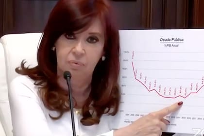 Durante la presentación de más de una hora ante el Tribunal Oral Federal por la causa Irán, el agitado discurso de la vicepresidenta Cristina Kirchner derivó inesperadamente en el tema de la deuda pública. Dijo allí, usando un gráfico para ilustrar sus filosas palabras: “En 2015, cuando termina nuestro gobierno [la deuda representaba] el 37,4% solamente del PBI [producto bruto interno]... Miren lo que pasó en apenas cuatro años: del 37,4%, a fines de 2019 pasamos al 72,6%, casi la duplicaron”. En el mismo gráfico mostró como la deuda era del 116,6% del PBI en 2004, a poco de haber asumido Néstor Kirchner la presidencia. El mito del desendeudamiento que construyó el kirchnerismo, resumido en un solo gráfico. La presentación dio lugar a un intenso debate, Y espero ahora arrojar un poco de luz.