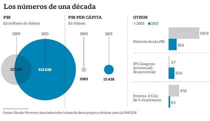 Para analizar estos años, fueron consultados por LA NACION los economistas Roberto Frenkel (Cedes), Daniel Artana (FIEL), Héctor Valle (FIDE) y Roberto Cortés Conde (Universidad de San Andrés). "Desde 2003 se modificó el eje de la acumulación hacia las actividades productivas, desplazando al esquema de acumulación financiera vigente durante la convertibilidad", sostuvo Héctor Valle. Este cambio, afirmó, determinó "la extensa fase de crecimiento con mayor equidad verificada en los últimos diez años".