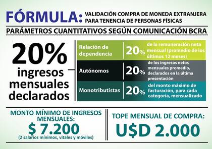 - El límite inferior es percibir en concepto de ingresos mensuales el equivalente de $7200 en promedio en los últimos 12 meses y el límite superior de compra será equivalente a 2 mil dólares.