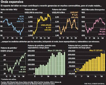 El WSJ Dollar Index, que compara el valor del dólar en relación con una canasta de divisas, acumula un alza de 2,9% este mes, lo que refleja las mayores expectativas de que la Reserva Federal de Estados Unidos eleve las tasas de interés de corto plazo en su reunión del 14 y 15 de junio. Numerosos analistas y operadores prevén que el dólar siga subiendo este año, conforme el banco central estadounidense muestra su determinación a subir las tasas, mientras que Europa, Japón y China recurren a políticas de estímulo con el fin de impulsar la demanda de bienes y servicios.