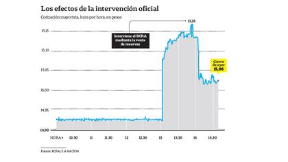 La intervención oficial llegó poco antes de las 14, cuando el precio del billete para operaciones mayoristas había alcanzado los $ 15,16.