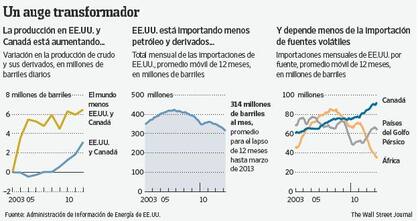 En EE.UU., este crecimiento se debe sobre todo a los nuevos métodos de perforación para extraer petróleo atrapado en capas de esquisto y otras rocas. Canadá protagoniza una explosión de inversiones en la extracción de petróleo pesado de los depósitos de arenas bituminosas. La producción mexicana se ha mantenido prácticamente invariable.
