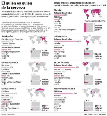 Se trata de la cuarta mayor adquisición de la historia y la más grande este año, según Dealogic. El acuerdo daría a AB InBev una presencia dominante en los principales continentes y consolidaría su posición como la mayor cervecera del mundo con una cuota de mercado aproximada de 28,4% después de desinversiones, casi tres veces la cuota de su rival más cercano, Heineken NV, de acuerdo con Plato Logic, una firma que sigue a la industria cervecera. La compañía combinada generaría ingresos por US$64.000 millones.