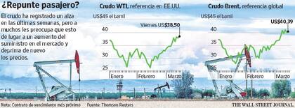 Los precios del petróleo subieron 40% entre mediados de marzo y comienzos de mayo de 2015 y llegaron a US$60,75 el ba-rril después de haber descendido a US$43,46. Los inversionistas se lanzaron ante las expectativas de que el derrumbe de los precios desataría una veloz caída de la producción de esquisto de EE.UU. Los analistas proyectaban que los precios ascenderían a US$70 el barril para 2016.