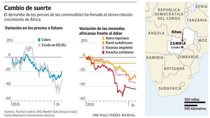 La disminución de la demanda china redujo a casi la mitad el precio del cobre en los últimos dos años, infligiendo un duro golpe a Zambia, que depende del metal para el 70% de sus exportaciones. Los contratistas y los propietarios de restaurantes que habían seguido a las empresas de construcción chinas a este país africano empiezan a devolverse a sus hogares. El kwacha, la moneda de Zambia, perdió casi la mitad de su valor el año pasado. En su desesperación, el presidente Edgar Lungu decretó días de oración en todo el país para pedir una intervención divina que resucite la economía.