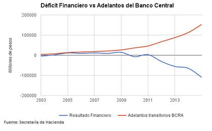 Ante la necesidad de mayor financiamiento, a partir del 2009 el Tesoro Nacional intensificó el uso de Adelantos Transitorios del Banco Central de la República Argentina para cubrir el déficit. Lo que también se conoce como financiar el déficit con emisión de dinero.