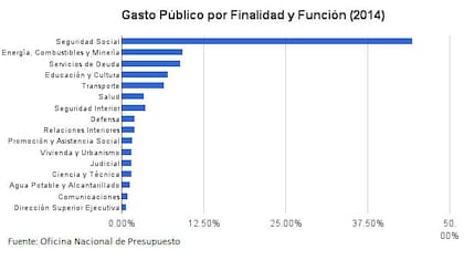 En este punto, el de la contabilidad estatal, hay que prestar atención al Gasto Corriente, básicamente las erogaciones que hacen "funcionar" al Estado. Del total del 2014, los mayores rubros fueron: