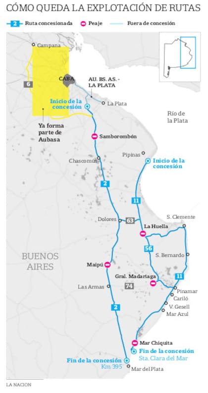 Las rutas pasarán a formar parte de Autopistas de Buenos Aires (Aubasa), la empresa estatal que ya explota la concesión por el sistema de peajes la traza que une el sur porteño y La Plata. Hace pocas semanas, a través de un convenio con Vialidad Nacional, también se le traspasó la jurisdicción provincial la ruta 6, una suerte de cuarto anillo de circunvalación de vital importancia que une La Plata con el puerto de Zárate a través de una traza de 180 kilómetros.