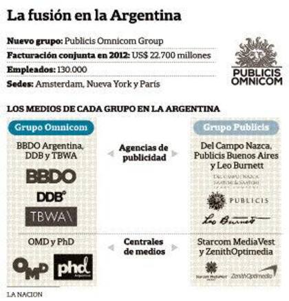La sorpresiva fusión a nivel mundial de los grupos Publicis y Omnicom tendrá un impacto directo en el mercado argentino, donde el nuevo gigante controla a media docena de agencias de publicidad y se superponen los rubros de varios de los principales clientes.