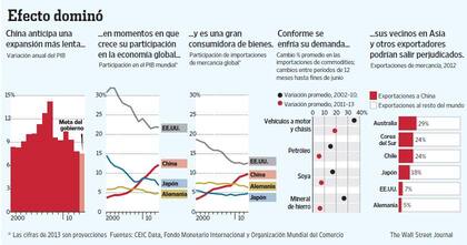 China se encamina a representar 13% de la actividad económica global este año, frente a 5% en 2006. Así que incluso con una expansión más lenta, el efecto de China en todo el mundo es importante. Un mayor declive en el crecimiento de China provocaría sacudidas en todo el mundo. Un riesgo es que las firmas chinas, reacias a despedir trabajadores, se vean obligadas a reducir personal, lo que afectaría el gasto interno y socavaría la meta pasar a una economía impulsada por el consumo.