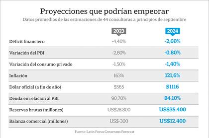 El más reciente relevamiento de Latinfocus, hecho entre 44 bancos y consultoras locales, arrojó para este año una inflación estimada de 163% para todo 2023. Sin embargo, como la encuesta se hizo entre el 5 y el 7 de septiembre, no incorporó el impacto de las últimas medidas. En la consultora Econviews, la proyección es de un piso de 181%. “Mi visión de las medidas es muy negativa, en dos aspectos. Uno es el fiscal, porque este paquete desfinancia a las provincias y al gobierno nacional. Y como alguien lo tiene que financiar, a mi modo de ver eso es maquinita. Y ofrecer dinero cuando nadie lo está demandando, como ahora, se llama inflación”, dice Andrés Borenstein, economista de la consultora.