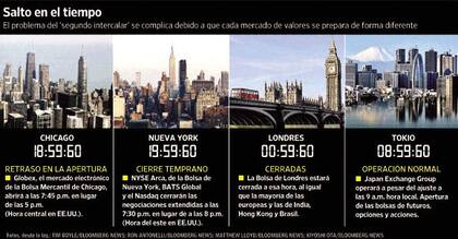 Un factor que podría complicar la situación es que las bolsas alrededor del mundo están asumiendo el asunto de formas distintas. Los mercados asiáticos en general prevén seguir operando como de costumbre, mientras que las bolsas de EE.UU. planean medidas para limitar el corretaje alrededor del segundo intercalar.