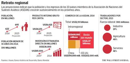 Este mercado común, que lleva más de una década en construcción y aspira a convertirse en un bloque regional que com-pita con China y Japón, incluye economías tan diversas como la rica y abierta Singapur y la emergente Myanmar.