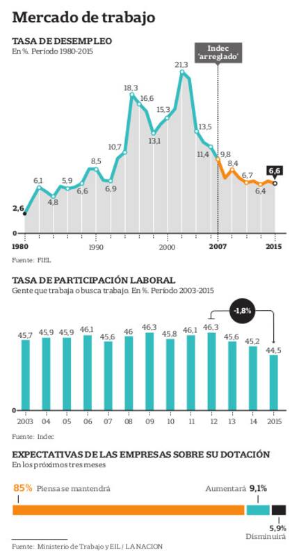 La última cifra de desempleo oficial publicada por el Gobierno anterior fue de 5,9 para el tercer trimestre de 2015. Vale recordar que en esta encuesta, Formosa y Gran Resistencia, por ejemplo, tuvieron una tasa de desocupación de 1,6 y 1,5 por ciento respectivamente durante este período.
