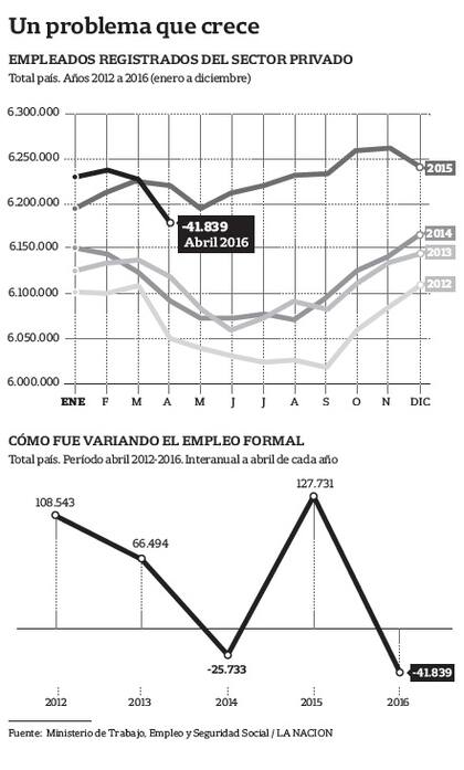 Los sectores que más problemas tienen en materia de empleo son: la industria manufacturera, como, por ejemplo, la automotriz y de autopartes, que registró 18.071 trabajadores menos en abril de 2016 contra el mismo mes de 2015 y que acusó un fuerte impacto por la caída económica de Brasil.