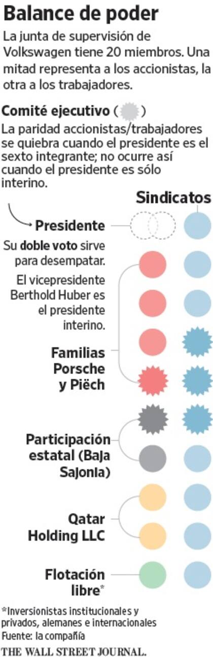 "La familia Porsche-Piëch ejercerá más influencia sobre la empresa en el futuro", dijo una persona cercana a la junta de VW. No obstante, el clan Porsche-Piëch puede quedar en minoría. Es por eso que muchas veces la familia se alía con el líder sindical Bernd Osterloh. Los representantes sindicales tienen 10 de los 20 asientos en el consejo, lo que hace que Osterloh sea en una figura decisiva. "Nadie del lado de los trabajadores votará contra Osterloh", agregó la fuente.